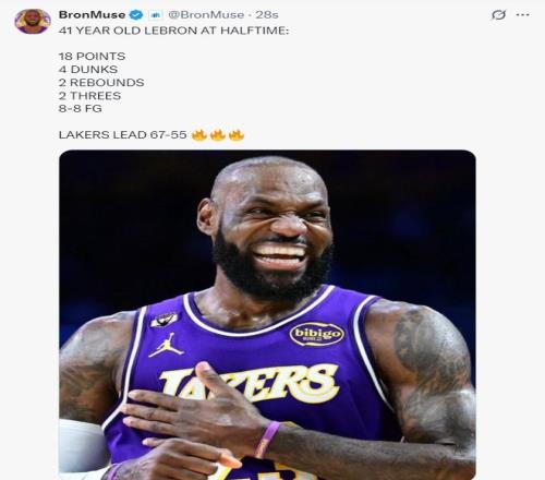 湖媒:上半場詹姆斯已經(jīng)完成了4次暴扣,41歲的勒布朗又火了。