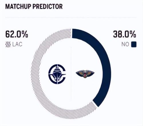 賽前,美媒ESPN對本場比賽進(jìn)行了勝率預(yù)測,快船隊(duì)勝率依舊高達(dá)62.0% ,鵜鶘隊(duì)勝率則僅有38.0% ,差距明顯。