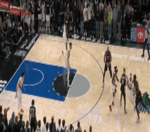 迪文琴佐持球突破面對(duì)克林根防守強(qiáng)行得分失敗,之后克林根和戈貝爾兩人巔峰搶板對(duì)決。戈貝爾在位置更好下想補(bǔ)籃但被克林根干擾,最終球被開(kāi)拓者的格蘭特拿下來(lái)...