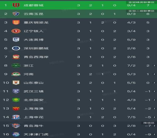 積分榜上的格局也因這場比賽發(fā)生了變化,本輪過后中超賽場再無全勝球隊,蓉城補時絕平守住榜首,云南玉昆憑借這場大勝升至第二位,重慶銅梁龍和遼寧鐵人分居三四位。