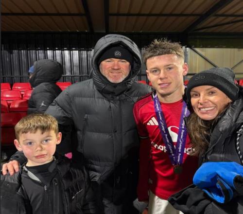 自豪,魯尼夫婦見證兒子凱隨曼聯(lián)U16奪得英超聯(lián)賽盾杯冠軍