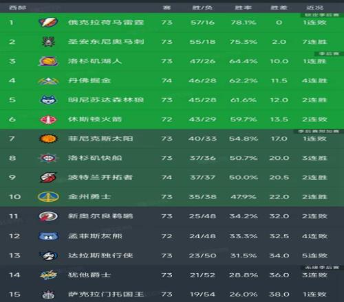 森林狼45勝28負(fù)暫列第5名,落后掘金0.5個(gè)勝場(chǎng),火箭遭遇兩連敗,目前的戰(zhàn)績(jī)是43勝29負(fù),落后森林狼1.5個(gè)勝場(chǎng),落后掘金2個(gè)勝場(chǎng)?;鸺F(xiàn)在已經(jīng)暴露隱患,缺少了穩(wěn)定拿球的后衛(wèi),關(guān)鍵時(shí)刻太依賴阿杜??齑?19-94大勝猛龍迎來三連勝,以37勝36負(fù)穩(wěn)居第8名,落后第7的太陽3個(gè)勝場(chǎng)。開拓者130-99狂勝雄鹿,繼續(xù)落后快船0.5個(gè)勝場(chǎng)暫列第9名。勇士克服傷病的影響,109-106險(xiǎn)勝弱旅籃網(wǎng),迎來兩連勝穩(wěn)居第10名。