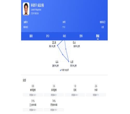 本賽季29次出場后,他場均可為廣州隊貢獻(xiàn)22.8分6.8助攻4.4籃板,其中場均得分高居聯(lián)盟第三,場均助攻高居聯(lián)盟第一。