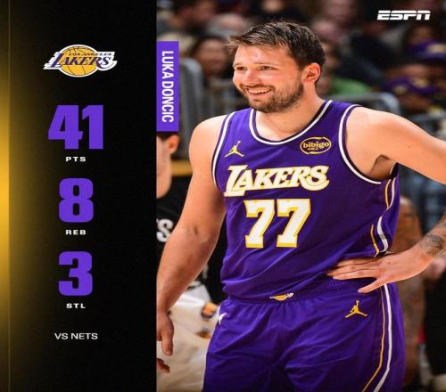 北京時間3月28日,NBA常規(guī)賽洛杉磯湖人主場116-99戰(zhàn)勝布魯克林籃網(wǎng),東契奇全場25投15中,砍下41分8籃板3助攻。