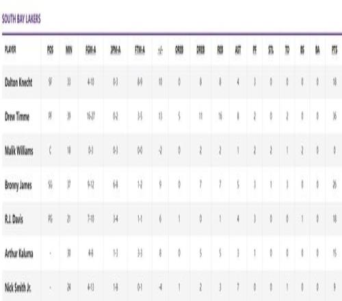 這場比賽后布朗尼代表南灣湖人出戰(zhàn)14場,場均28.9分鐘,拿到15.6分3.6助攻3.1籃板1.3搶斷0.4蓋帽,命中率56.4%,三分命中率45.6%。