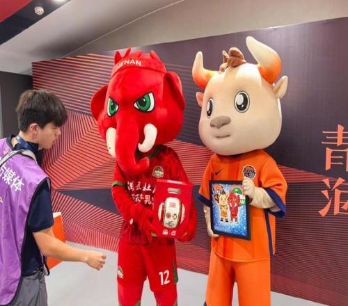 上賽季,河南隊(duì)吉祥物巴布來到青春足球場,與青島海牛吉祥物犇犇進(jìn)行了友好互動(dòng)。兩隊(duì)最終1-1握手言和。