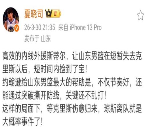 隨著斯蒂爾表現(xiàn)出色,山東男籃現(xiàn)在更換外援的順序發(fā)生了改變,瓊斯走的幾乎是沒(méi)有什么懸念,畢竟克里斯肯定是要回歸的,斯蒂爾的表現(xiàn)要比瓊斯好很多。
