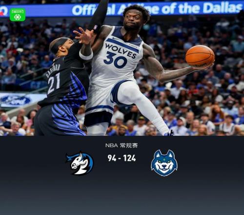第四節(jié)獨(dú)行俠約翰-波拉基達(dá)斯拿下8分,森林狼納茲-里德拿下7分,最終獨(dú)行俠94-124不敵森林狼