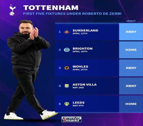 熱刺官方確認(rèn)德澤爾比出任球隊(duì)新主帥,將帶領(lǐng)球隊(duì)在本賽季英超剩余的7場比賽中完成艱難的保級任務(wù)。不過德澤爾比上一次執(zhí)教英超時前5場比賽一場未勝。