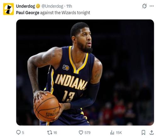 美媒Underdog寫道:這場(chǎng)比賽的喬治感覺像步行者巔峰期的他。