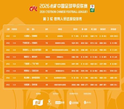 北京時(shí)間4月4日,中甲第3輪裁判名單公布,麥麥提江執(zhí)法長(zhǎng)春亞泰vs蘇州東吳