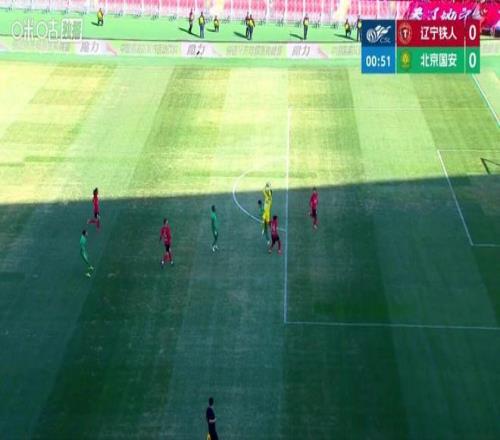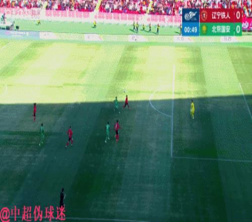 比賽剛開場32秒,國安的進(jìn)攻便壓到大禁區(qū)前沿,在遼寧鐵人防守球員回防不及時(shí)的情況下,門將韓镕澤選擇出擊,并沖到禁區(qū)外躍起雙手將皮球扔回禁區(qū)。