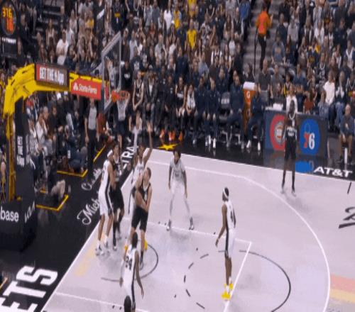 文班第一次攻約基奇,是弧頂面筐突破。他比約基奇輕盈。也應該是這球后,阿德爾曼教練開始琢磨了。