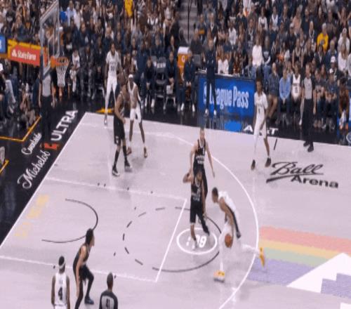 下一回合,約基奇和穆雷招牌遞手,穆雷投了福克斯。