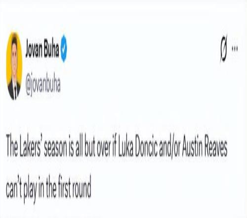 湖人隊記Buha在社媒上表示,如果東契奇和 / 或里夫斯無法出戰(zhàn)首輪,湖人這個賽季基本就提前結束了。大家怎么看?歡迎留言發(fā)表看法。