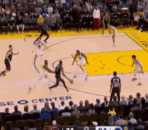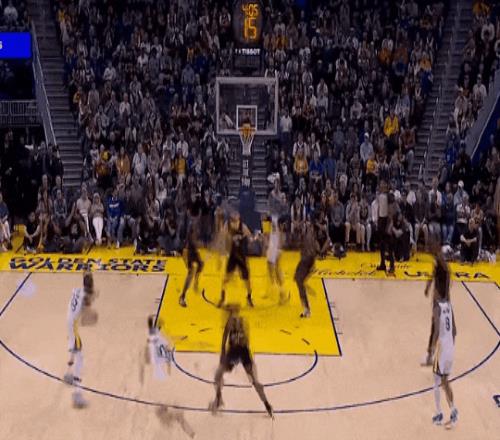 追夢內切上籃,庫里喂佩頓上籃,然后和追夢一個招牌遞手速投,差5分。