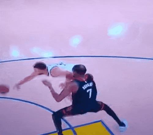 伊森犯了個錯誤,吃了庫里突破假動作側了身,大概“防你突先”——庫里一個撤步三分,“你居然放我投?”
