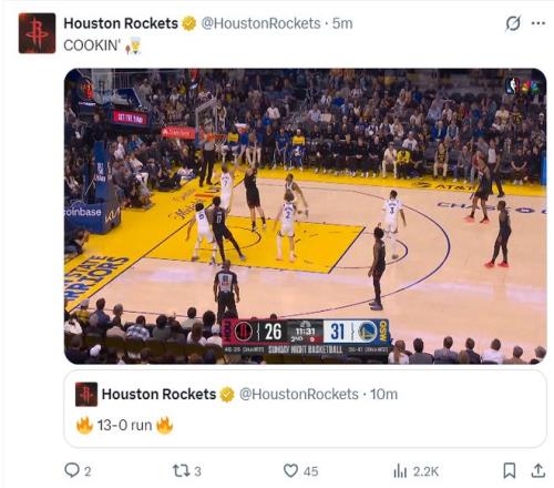第二節(jié)開場火箭的一波13-0申京一人貢獻(xiàn)5分3籃板1助攻,申京就連轉(zhuǎn)換的三分球都能命中,他還助攻霍勒迪命中三分,申京就是這支火箭的第一核心。申京第三次選擇三分沒中,單打波神命中,半場打完申京10中6拿到13分4籃板2助攻1蓋帽。