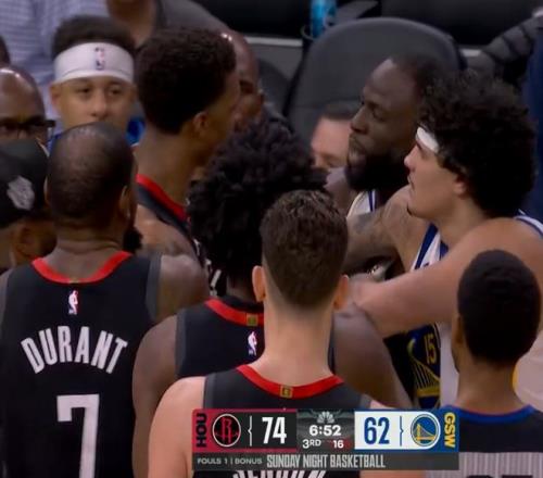 易邊再戰(zhàn),杜蘭特開場完成一個3+1,勇士擋不住杜蘭特了只能依靠犯規(guī),勇士隊不到4分鐘貢獻(xiàn)了5個犯規(guī),波爾津吉斯則吞下第四次犯規(guī)只能下場。小賈三分再中已經(jīng)領(lǐng)先到15分,火箭的勢頭下降是從伊森登場開始的,后仰打鐵、傳球失誤,烏度卡只能暫停,火箭15分的領(lǐng)先就這樣沒了。KD大帽波神,波神還送單節(jié)第五次犯規(guī)杜蘭特兩罰全中,三節(jié)打完火箭92-82領(lǐng)先勇士。