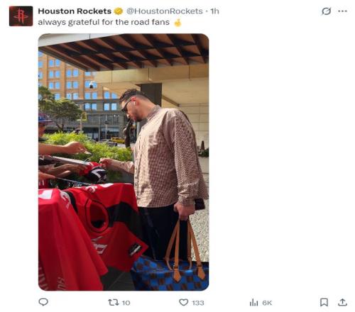 在舊金山申京也有諸多的球迷,賽前申京在酒店外為球迷們簽名。
