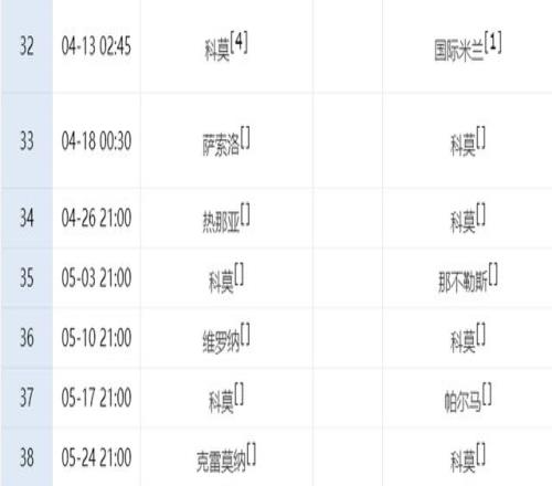 下一輪比賽,科莫就將在主場對(duì)陣國米,之后第35輪,他們還將在主場迎戰(zhàn)那不勒斯,這2場比賽的結(jié)果,將決定科莫的命運(yùn)。作為本賽季意甲大黑馬,科莫的表現(xiàn)給球迷帶來了很大的驚喜,不過如果輸?shù)暨@2場惡戰(zhàn),他們很可能無緣前四。