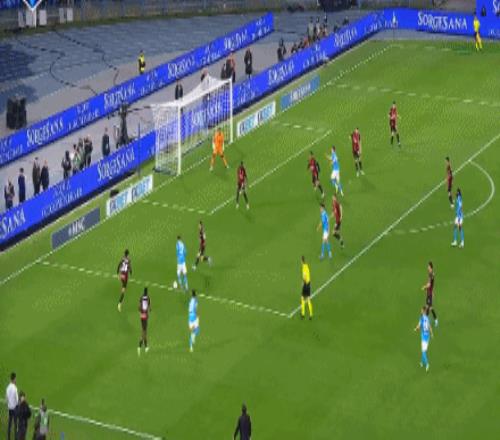 第79分鐘,那不勒斯左路進(jìn)攻,阿利松·桑托斯盤帶分球,奧利維拉跟進(jìn)下底傳中,門前米蘭后衛(wèi)阿特卡梅解圍沒頂遠(yuǎn),后點波利塔諾跟進(jìn)小角度破門,打進(jìn)全場唯一進(jìn)球。