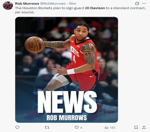 根據(jù)美記Rob Murrows的報(bào)道,火箭隊(duì)計(jì)劃將JD0戴維森的合同轉(zhuǎn)為正式合同。本賽季戴維森場均7.2分鐘,拿到2.2分1助攻1籃板,命中率38%,三分命中率29%,上一次登場是對(duì)陣爵士的垃圾時(shí)間,他在烏度卡輪換中幾乎沒有席位。(后場用謝潑德、霍勒迪、奧科吉)