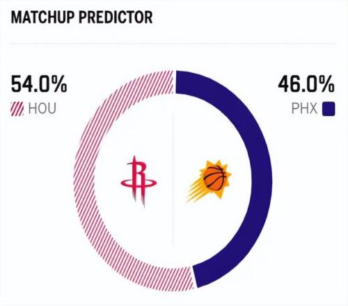 賽前,美媒ESPN對(duì)本場比賽進(jìn)行了勝率預(yù)測,火箭隊(duì)勝率為54.0% ,太陽勝率則僅有46.0% ,處于劣勢(shì)。