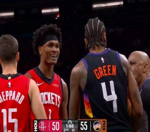次節(jié)回來,申京5投0中后,背身單打時(shí)又出現(xiàn)失誤,今天完全不在狀態(tài)。泰特撞倒狄龍,兩人發(fā)生口角互相推搡,狄龍隨后又造成杜蘭特犯規(guī),火箭太陽不到半場已經(jīng)出現(xiàn)四次沖突。杜蘭特連中三記三分,火箭最多落后21分現(xiàn)已追到僅差6分。布克連續(xù)突破造殺傷,謝潑德三分還能命中回應(yīng),半場戰(zhàn)罷,火箭54-57僅落后太陽3分。