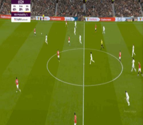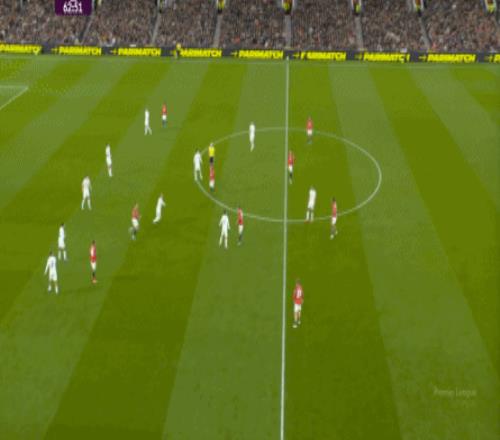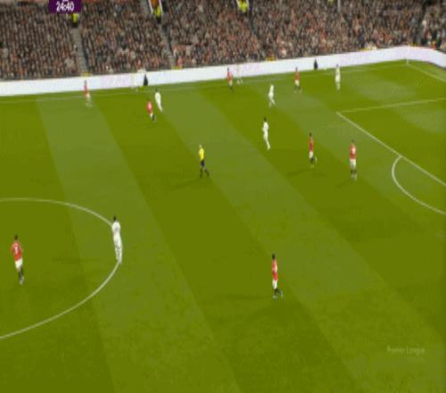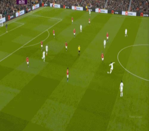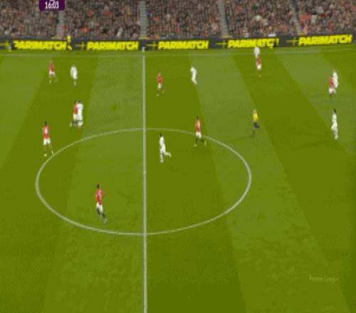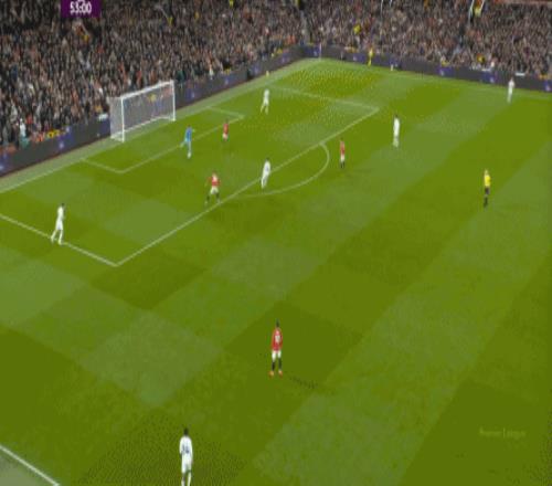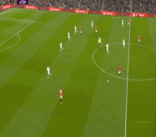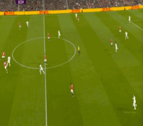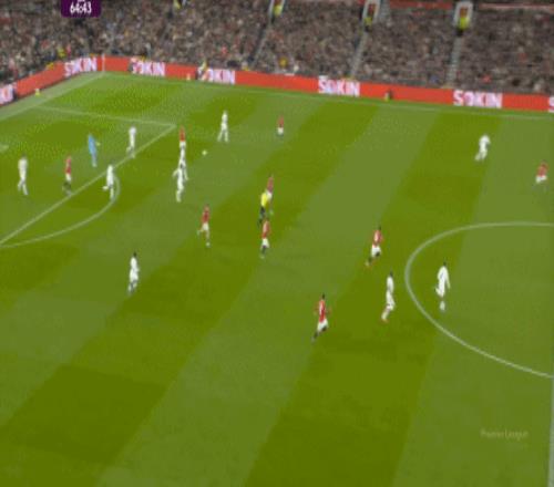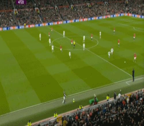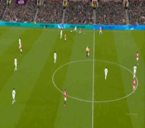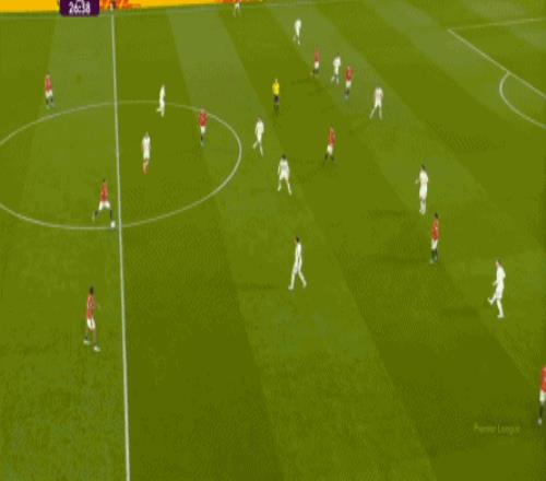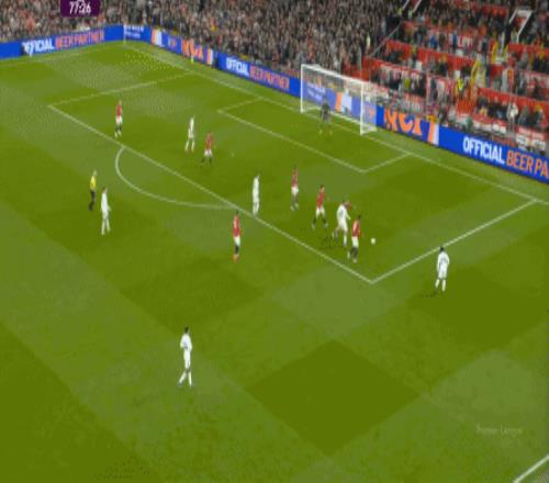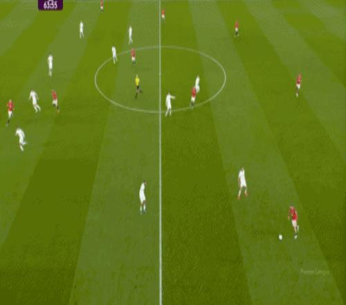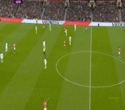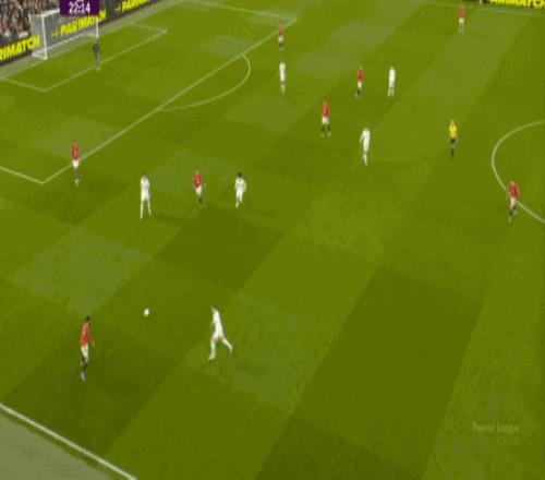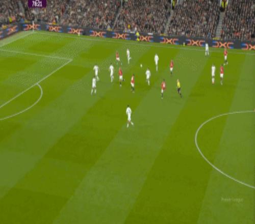 點燃了主場的氣氛之后,曼聯(lián)的表現(xiàn)有了一些提振,從而打出了一段連續(xù)的轉(zhuǎn)換進攻:
