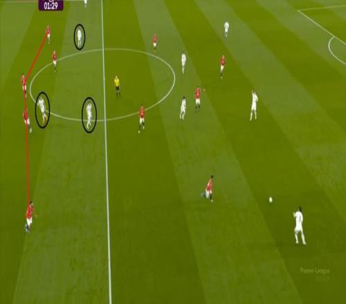 所以在這次由左路嘗試的進攻當(dāng)中,曼聯(lián)中路的壓力很大,雖然約羅打出兩次攔截,但烏加特并沒有在第一次攔截后聯(lián)系上庫尼亞,這使得利茲聯(lián)得以持續(xù)輸出: