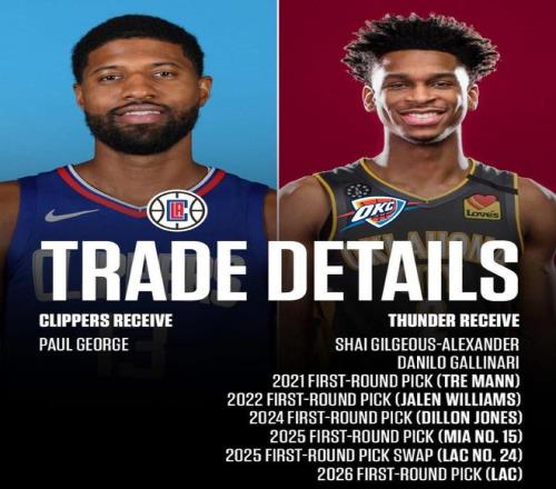 這筆賬越算越虧。2024年喬治自由身加盟76人,快船什么都沒(méi)換回。更致命的是2019年那筆交易埋下的雷:為得到喬治,快船送走了謝伊·吉爾杰斯-亞歷山大(現(xiàn)雷霆核心)加五個(gè)首輪簽。