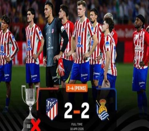 北京時(shí)間4月19日清晨,2025/26賽季西班牙國(guó)王杯決賽落下帷幕。馬德里競(jìng)技與皇家社會(huì)鏖戰(zhàn)120分鐘,2比2難分高下。點(diǎn)球大戰(zhàn)中,瑟洛特、阿爾瓦雷斯失點(diǎn),最終以點(diǎn)球3比4、總比分5比6飲恨敗北。皇家社會(huì)隊(duì)史第四次捧起國(guó)王杯冠軍,而馬競(jìng)則是延續(xù)近11年來(lái),只有一座西甲冠軍獎(jiǎng)杯的尷尬。