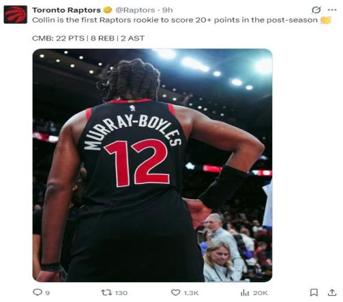 1.他是猛龍建隊31年首位季后賽拿到20分的新秀;